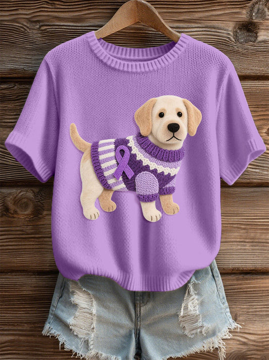 Women's Felt Art Labrador Dog Pattern Cozy Knit Top