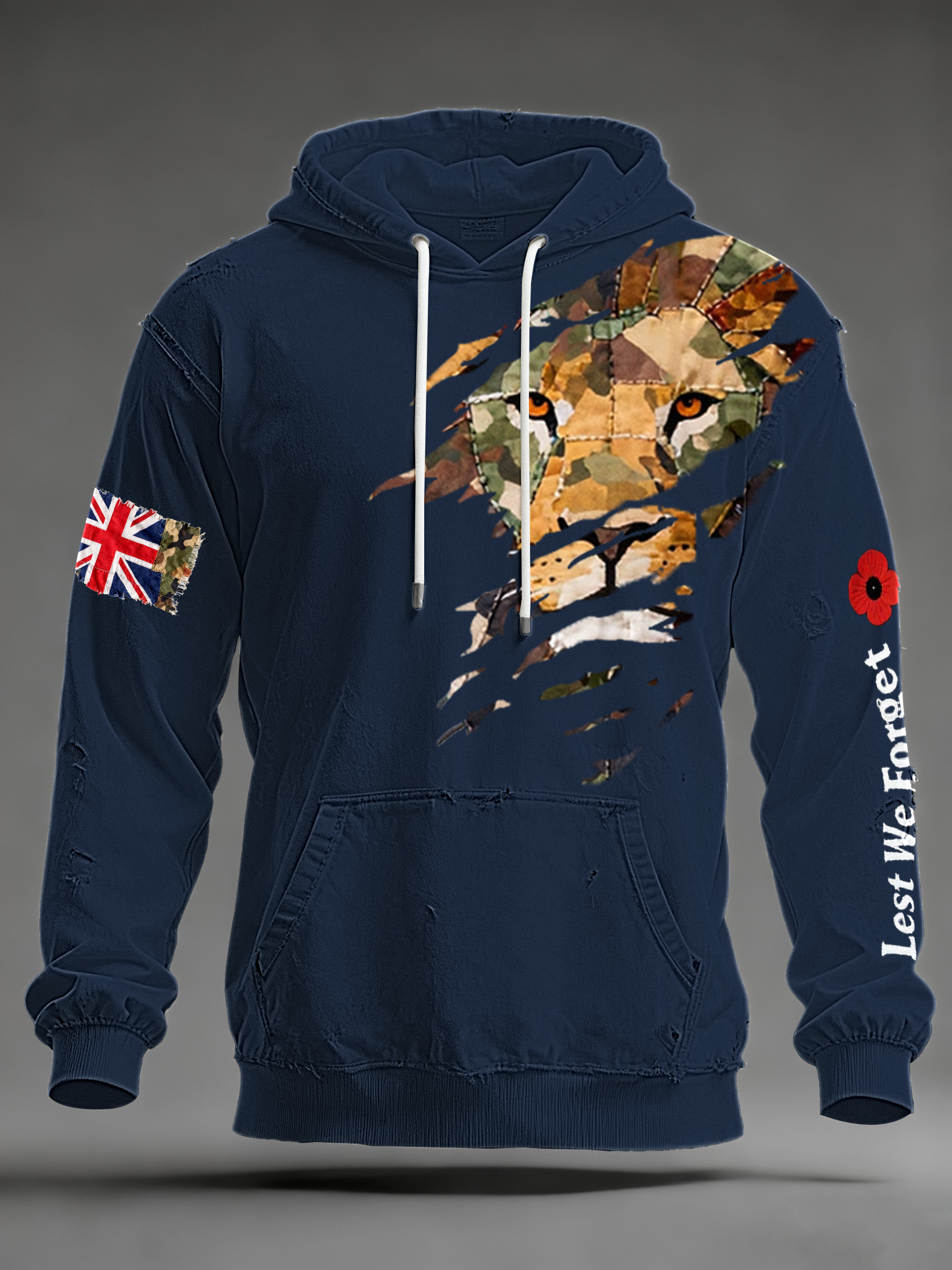 Men's British Lion Lest We Forget Oversized Drop-Shoulder Hoodie with Pockets
