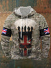 Men's UK Flag Camouflage Skull Print Casual Hoodie