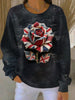 Women's British Rose Printed Ribbed Round-Neck Sweatshirt