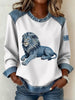Women's British Style Denim Lion Patchwork Art Sweatshirt